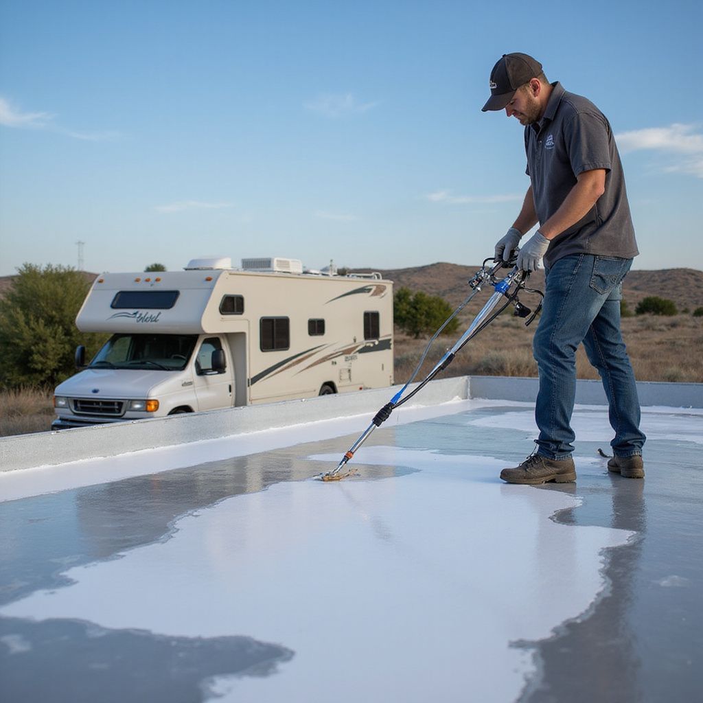 Techos permanentes para vehículos recreativos con pintura en aerosol, diseñados para proteger su hogar sobre ruedas.